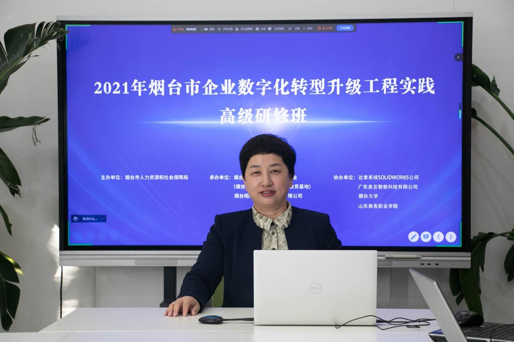 2021 年 10 月 28 日—29 日,由烟台市人力资源和社会保障局主办,烟台先进制造工程技术学会(烟台市专业技术人员继续教育基地)和烟台昭阳数字技术服务有限公司联合承办的“企业数字化转型升级工程实践”高级研修班在碧海大厦成功举办,来自全市的企业专业技术人员、各院校相关专业的教师 80 余人参加了本次高修班。