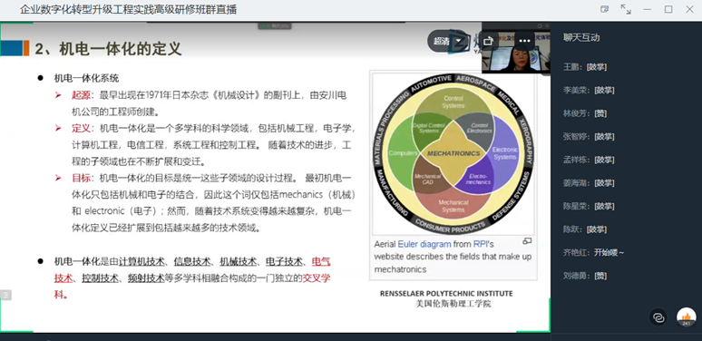 烟台先进制造工程技术学会秘书长胡兆奎致辞指出,举办本次高研班,是积极响应“十四五”规划中制造产业数字化转型和山东省新旧动能转化的需求,助力制造企业利用新一代信息技术,提高研发设计、生产制造、经营管理、市场服务等环节的数字化应用水平,有针对性地培养既懂业务又懂应用的数字化专业人才。本期研修班是第一期,我们将根据技术的发展和企业的需求持续推出新的数字化转型课程,为我市新旧动能转化、制造业转型发展过程中的数字化专业人才培养贡献力量。